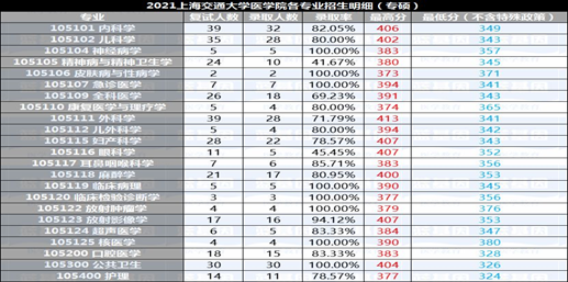 2021年上交医学院研究生院录取情况