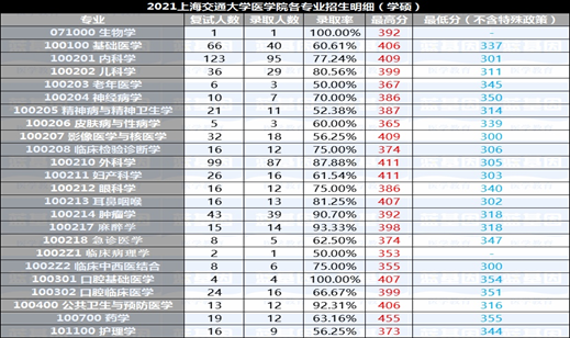 2021年上交医录取